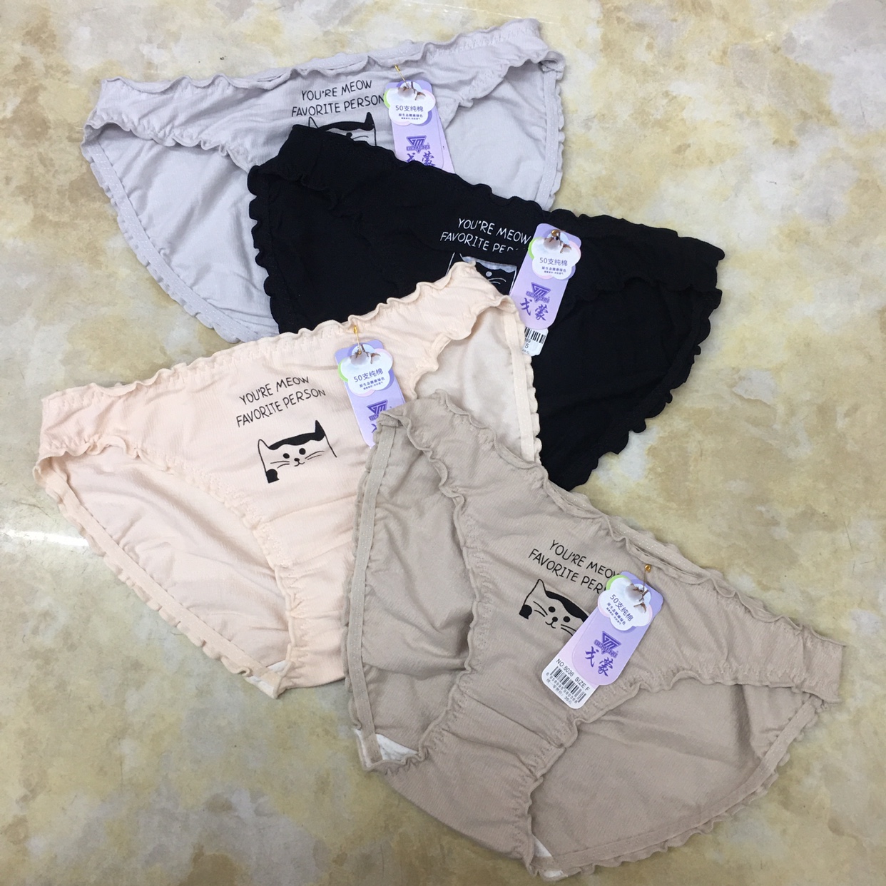 【产品名称:精品特惠戈蒙木耳边印花小猫咪柔棉亲肤纯棉内裤水洗棉中腰三角裤】