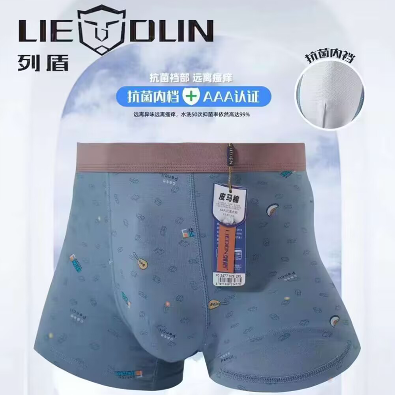 【产品名称:列盾男士内裤头字母图案皮马棉青年中高腰纯棉四角裤平角裤3477】