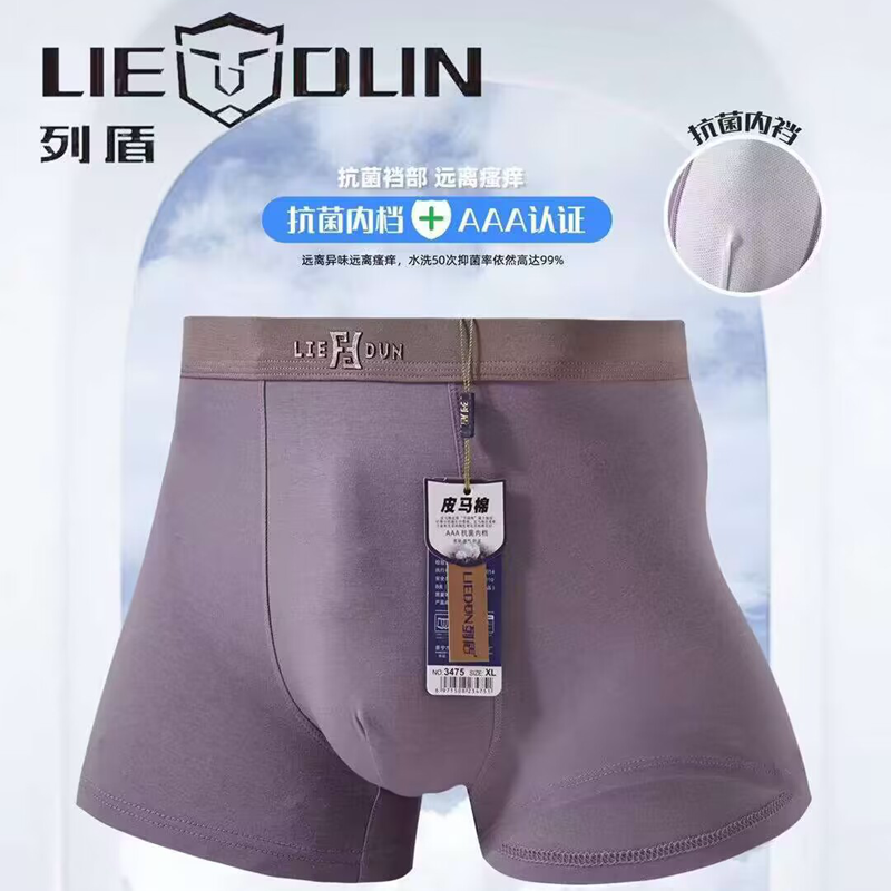 【产品名称:列盾男士内裤头四角纯色皮马棉男式抗菌青年中高腰纯棉平角裤3475】