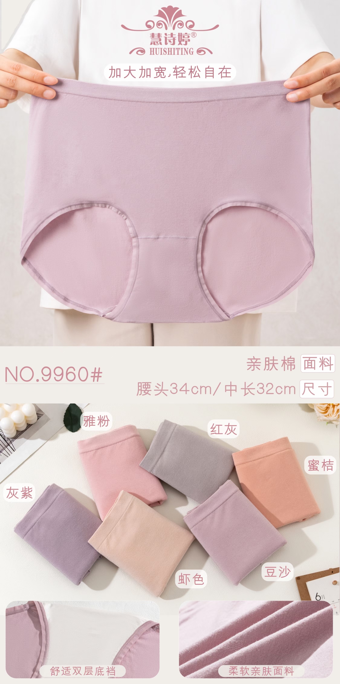 【产品名称:正品慧诗婷女士无缝亲肤棉加肥加大版妈妈内裤柔软9960一盒四条】