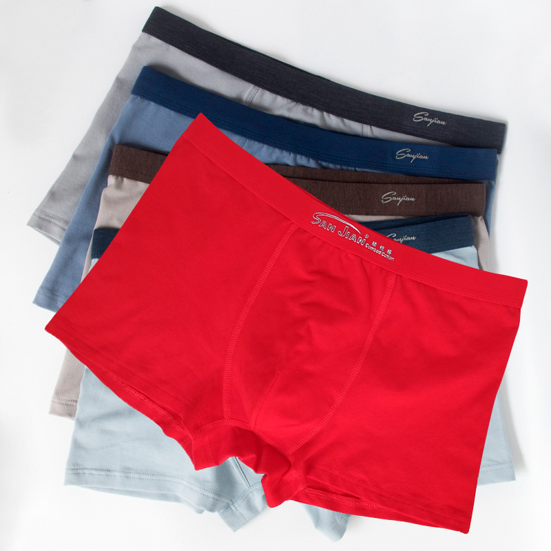 【产品名称:三尖男士内裤纯棉平角裤头中腰短裤纯色红色简约浅色深色四角裤衩】