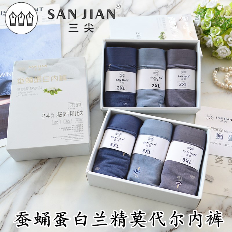 【产品名称:3条装三尖抗菌内裤青中年男士平角无痕蚕蛹蛋白男兰精莫代尔大码】