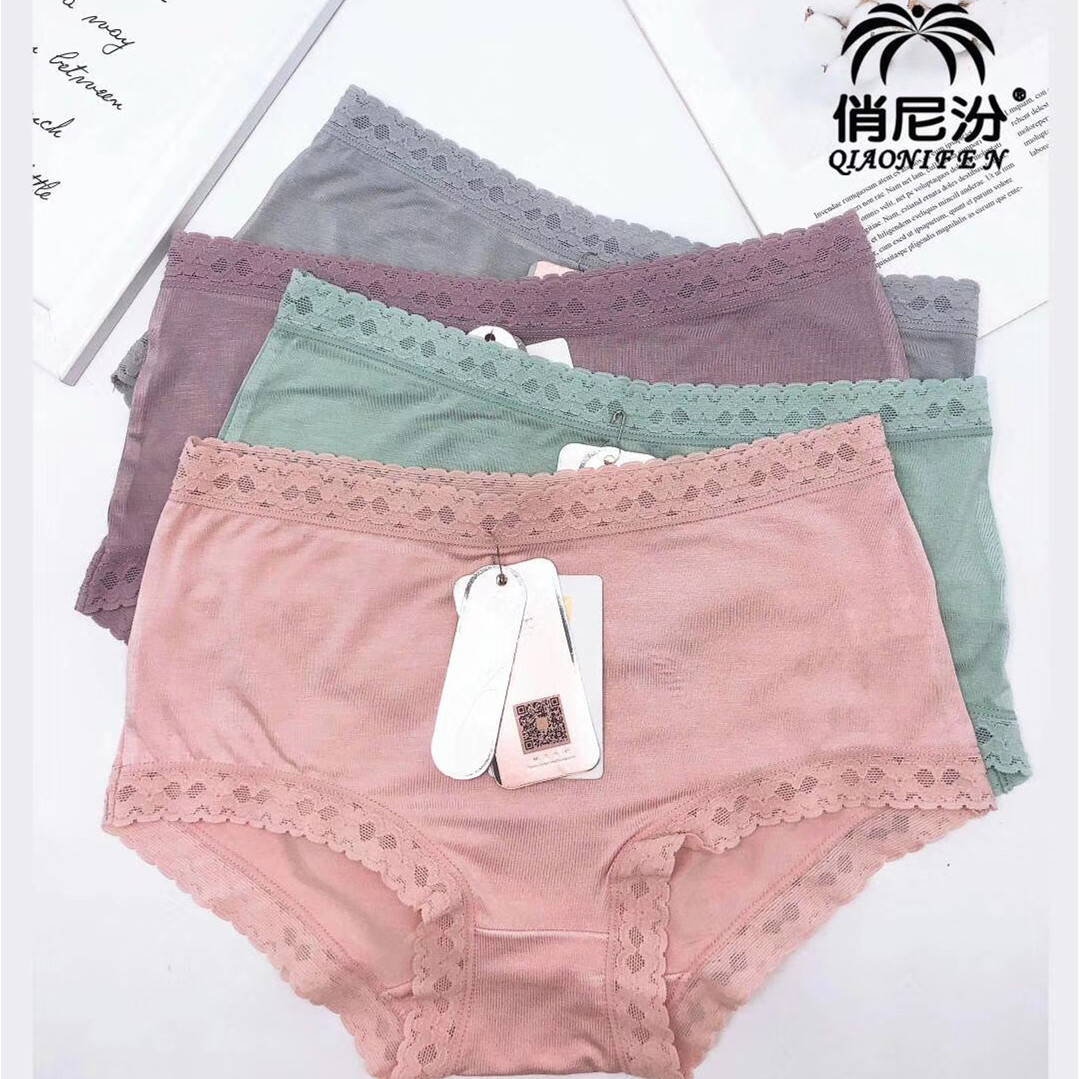 【产品名称:俏妮芬夏木代尔俏尼汾包臀莫代尔女士蕾丝中腰三角内裤6412】
