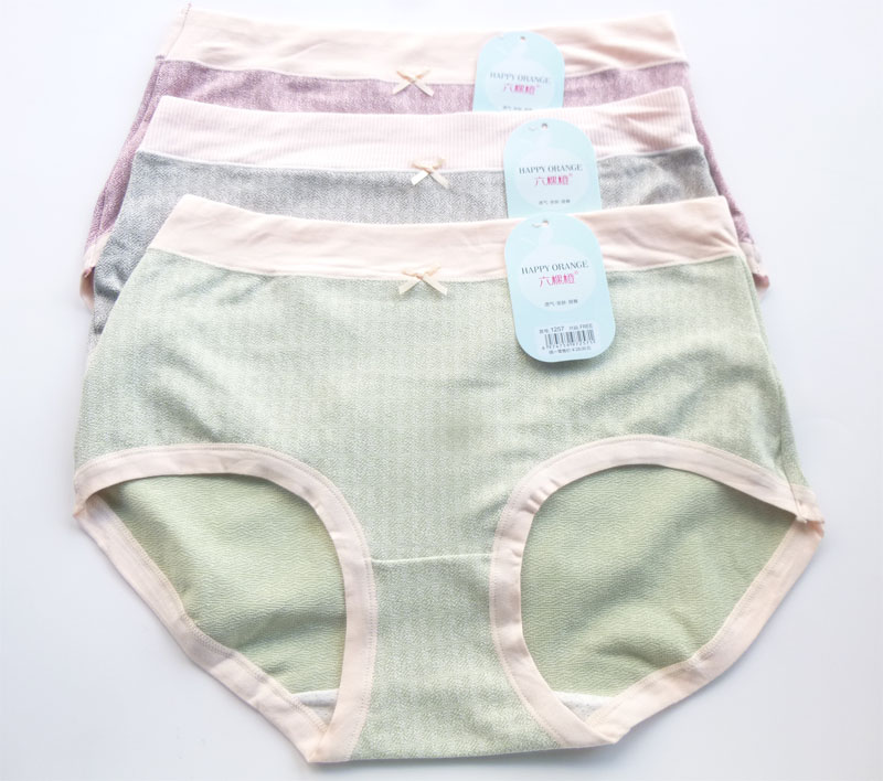 【产品名称:六棵橙新款1257透气大版型L码女三角内裤 棉 粘纤女士中腰短裤】