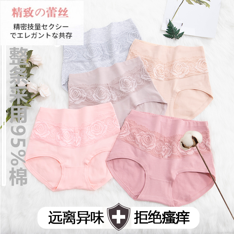 【产品名称:女士内裤女全棉中腰蕾丝纯棉抗菌妈妈高腰收腹大码透气三角裤头】