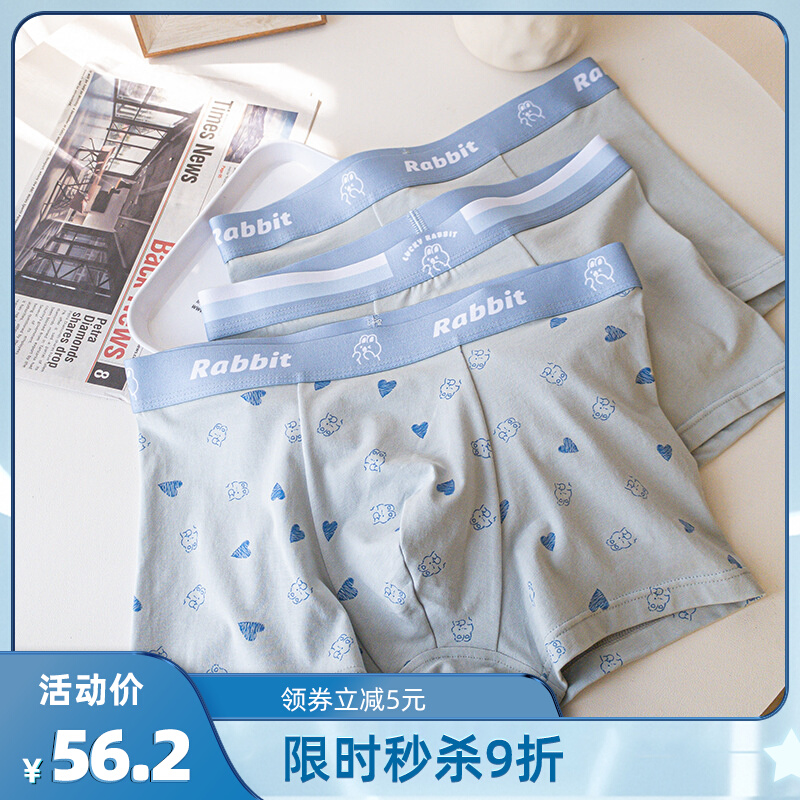 【产品名称:日本可爱兔子卡通男士内裤莫代尔夏季男孩四角裤男生平角裤送男友】
