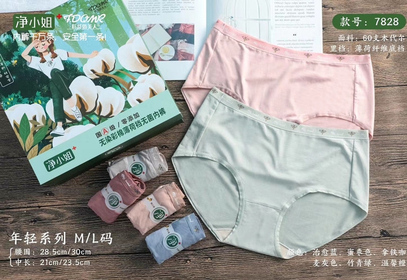 【产品名称:满3条包邮粉岱俏美人净小姐木代尔天然彩棉薄荷纤维底裆女士内裤】