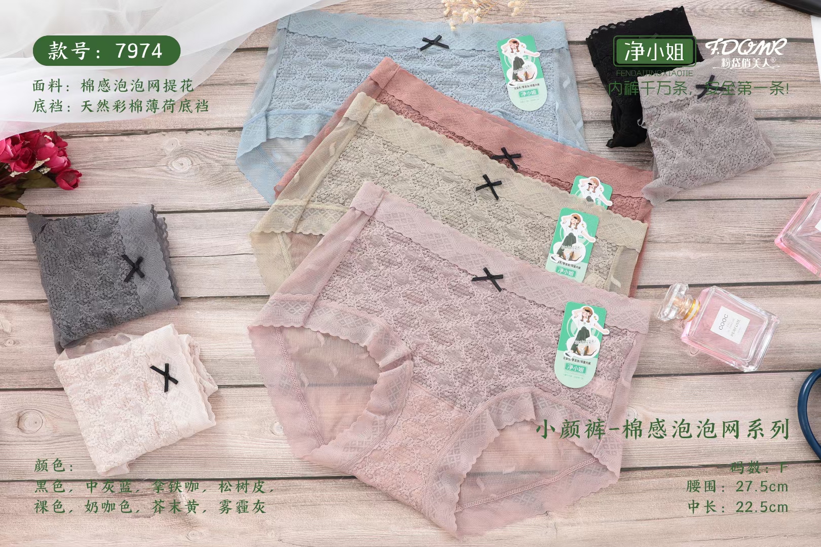【产品名称:3条包邮粉岱俏美人净小姐镂空蕾丝天然彩棉薄荷底裆内裤女三角裤】