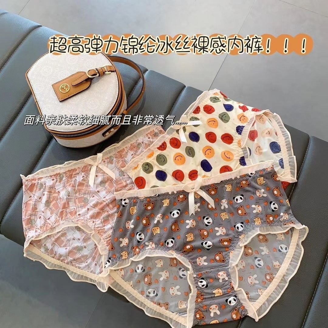 【产品名称:大码200斤可穿林梦雪卡通冰丝 胖MM面包裤舒适透气女内裤可爱印花】