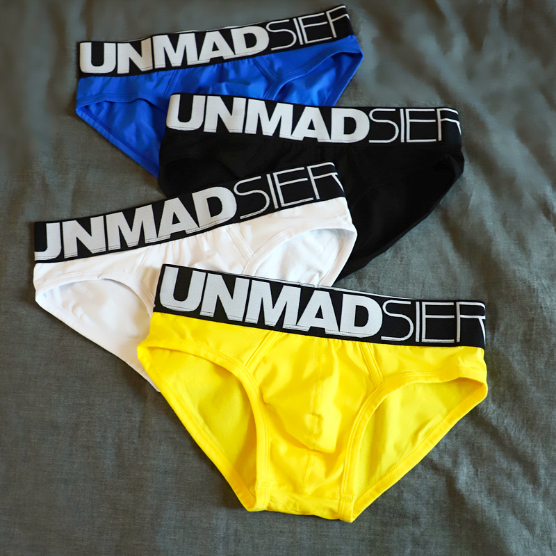 【产品名称:3件装岩也男士宽边三角裤内裤男纯棉透气性感运动白色潮unmadsier】