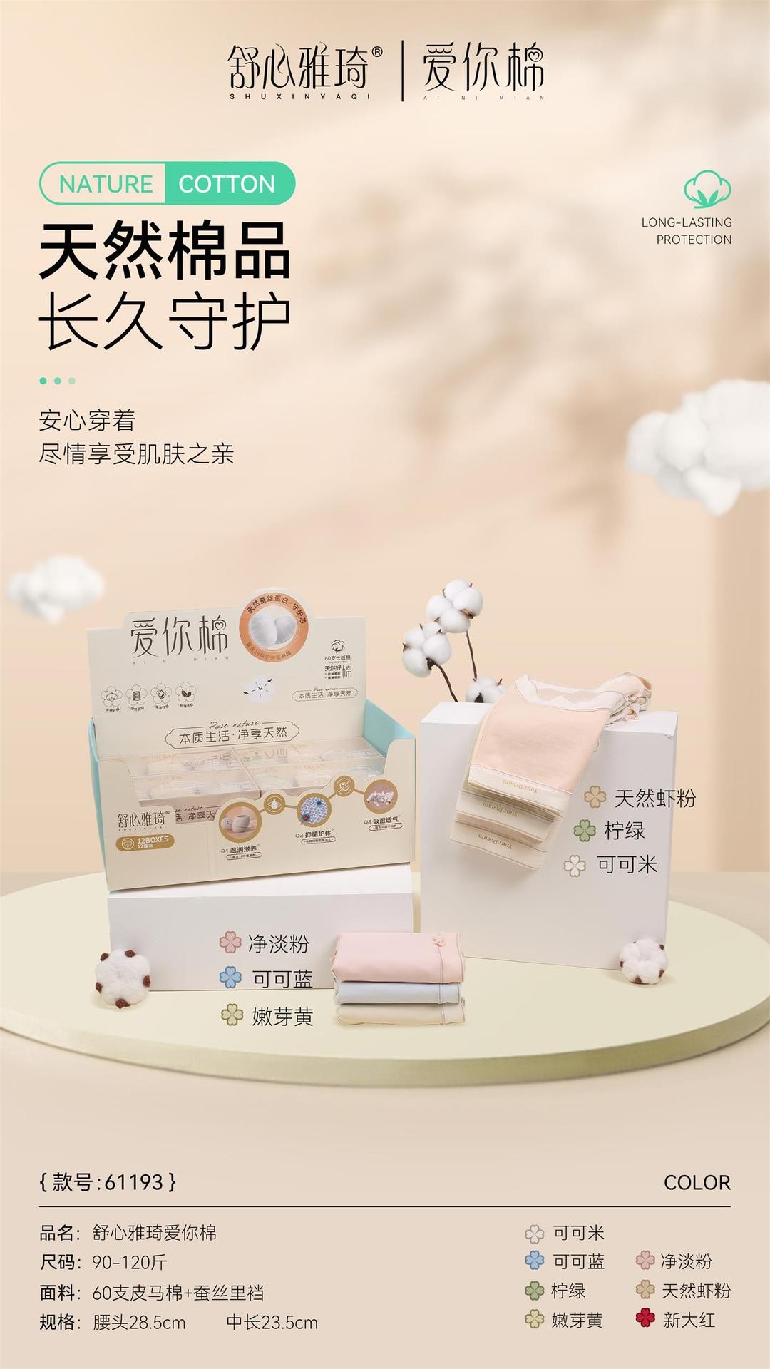【产品名称:舒心雅琦秋冬新款爱你棉蚕丝底裆弹力无痕边舒适女士内裤61193】