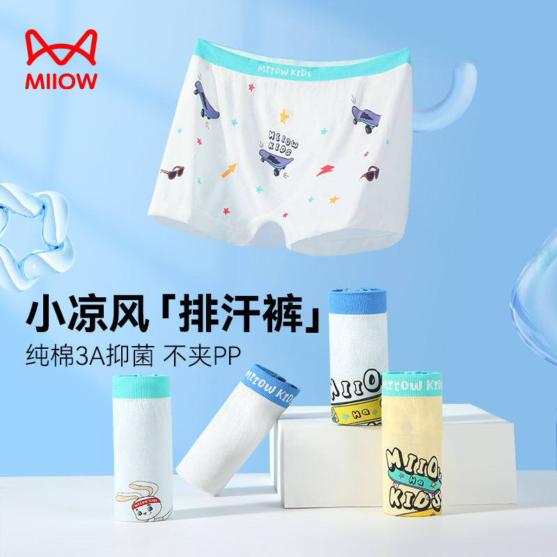 【产品名称:猫人男孩短裤青少年一体无痕夏季薄款胖瘦童男童平角四角儿童内裤】