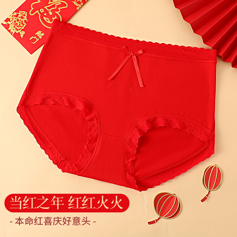 【产品名称:龙年红色内裤女本命年纯棉抗菌中腰全棉舒适女士结婚大红色三角裤】