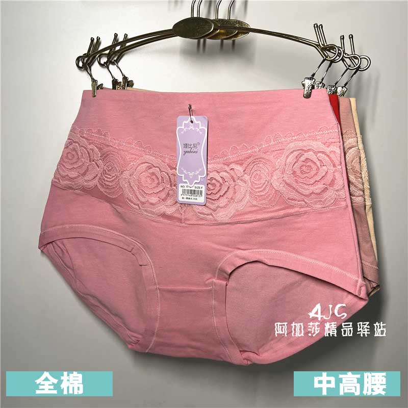 【产品名称:满4包邮 娅比尼 中高腰全棉横条蕾丝糖果色简约舒适女士三角内裤】