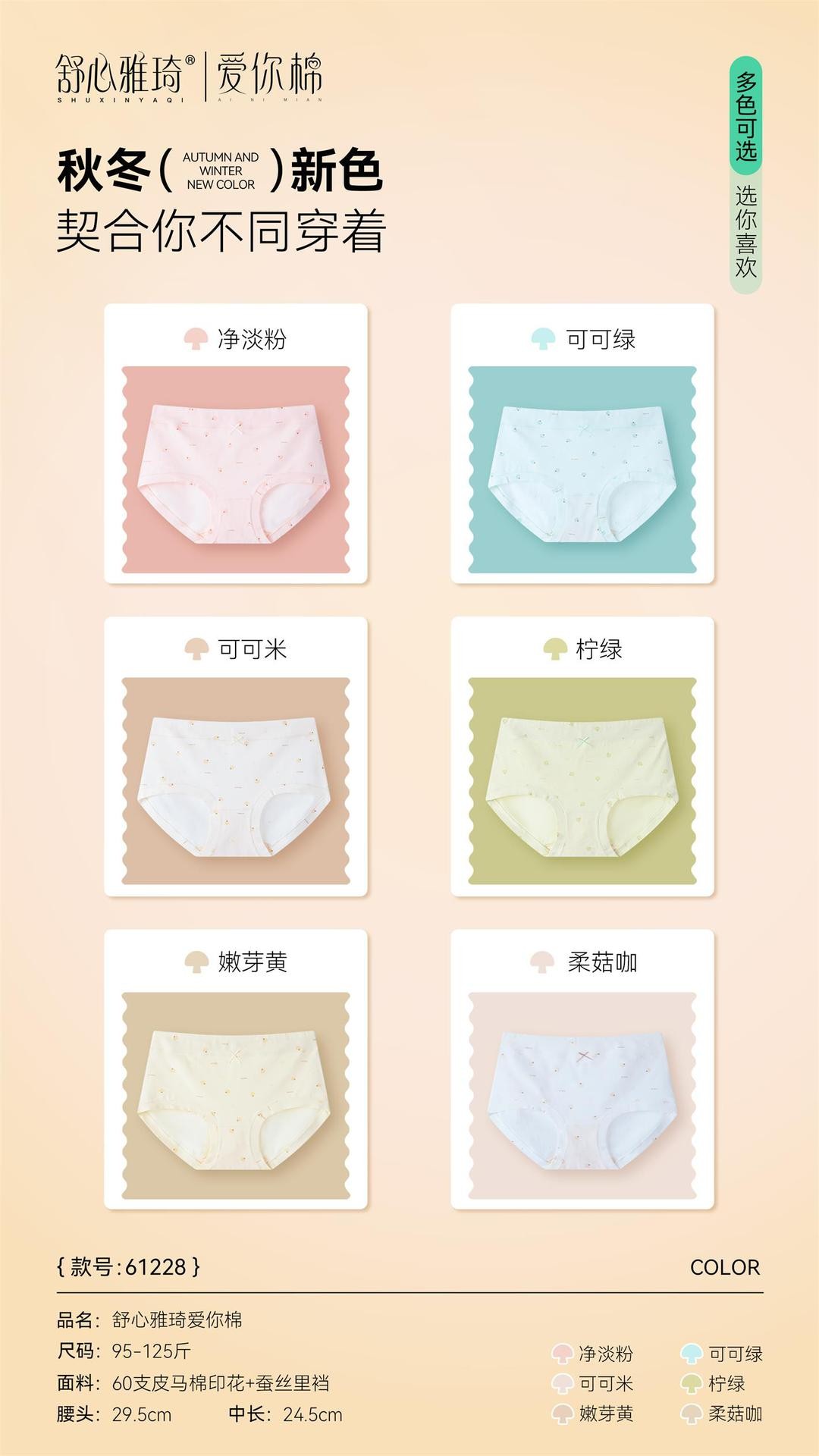 【产品名称:舒心雅琦秋冬新款爱你棉舒适透气蚕丝底裆抗菌女士内裤61228】