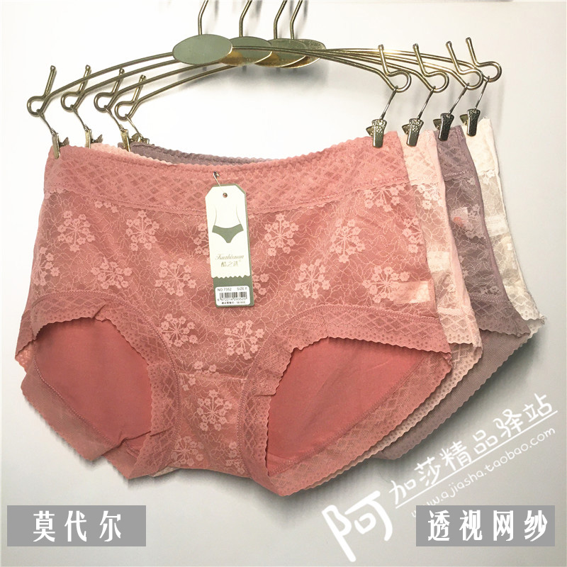 【产品名称:满4包邮娅比尼 女士莫代尔透视网纱性感纯色蕾丝性感中腰三角内裤】