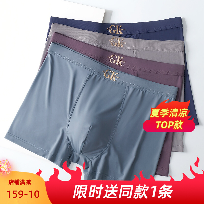 【产品名称:轻薄透气冰丝无痕内裤男士平角裤抑菌无感丝滑宽松大码男生四角裤】
