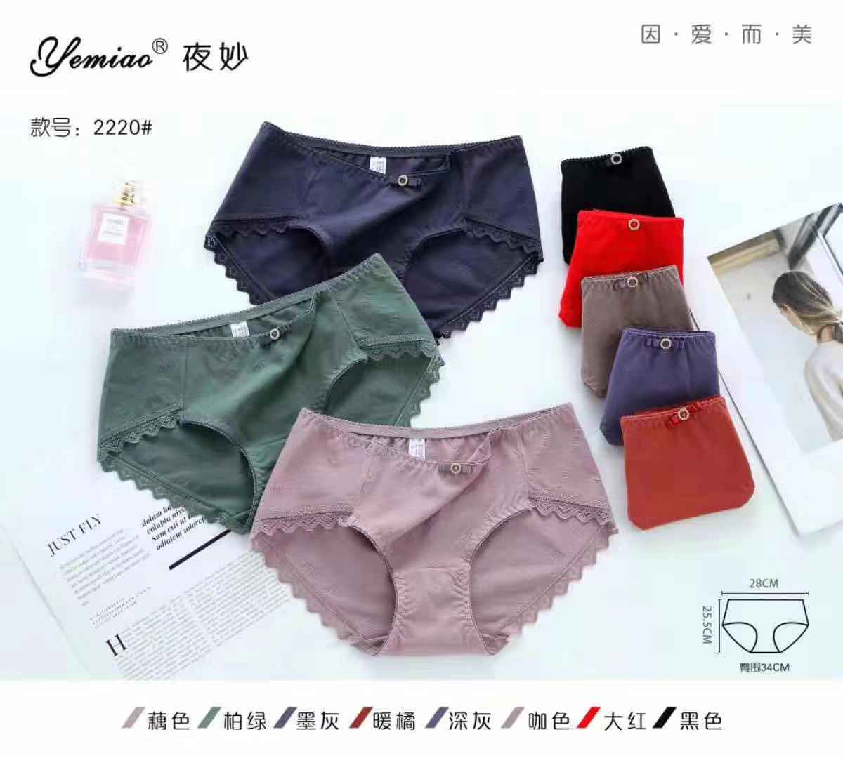 【产品名称:满4包邮 夜妙 蕾丝边女士低腰全棉性感贴身轻薄暗花亮钻三角内裤】