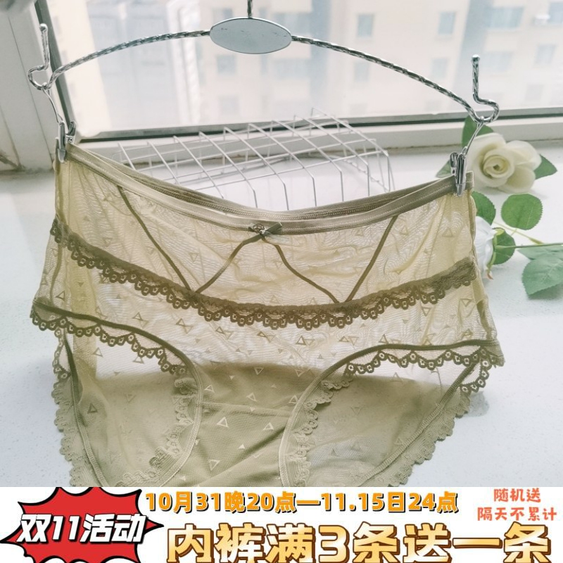 【产品名称:夜妙透明内裤女士中腰超薄款蕾丝性感夏季透视网纱三角裤头甜美】