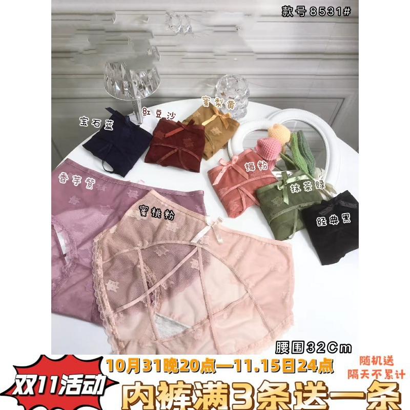 【产品名称:林梦雪8539大码内裤女士中腰超薄透明蕾丝网纱加肥版性感三角裤头】