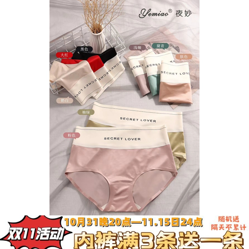 【产品名称:夜妙女士内裤女式压胶无痕三角裤大码简洁舒适丝滑柔顺亮面不缝线】