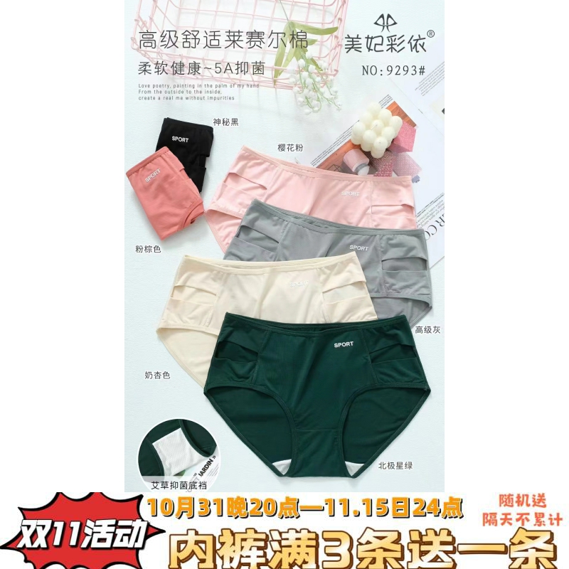 【产品名称:美妃彩依内裤女士中腰侧镂空性感莱赛尔棉舒适三角裤头甜美柔软】