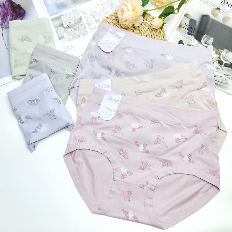 【产品名称:美茹芬2928亲肤棉舒适胖mm大码三角裤女高腰透气印花内裤 5条包邮】