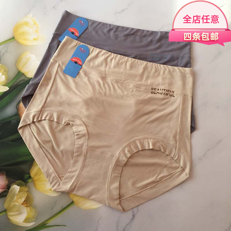 【产品名称:四条包邮情美时2584新款莫代尔棉高腰高弹包臀荷叶边女士三角内裤】