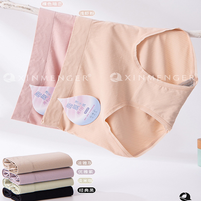 【产品名称:裸安无缝欣梦儿纯色舒适印花裸感面膜裤中腰三角女生抗菌底裆内裤】