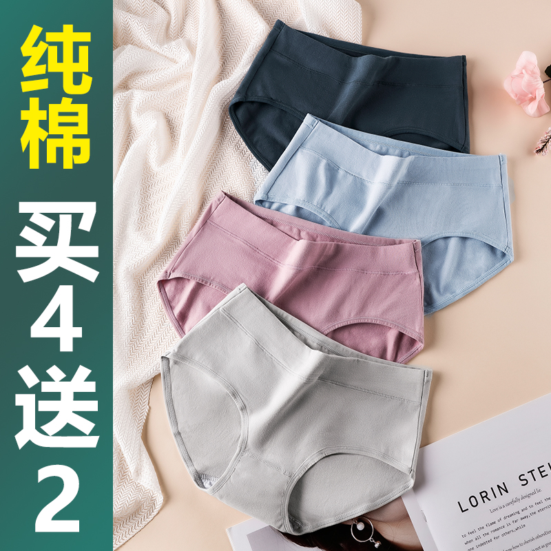 【产品名称:6条 女内裤全棉中腰简约棉质面料抑菌大码三角裤士底裤100%纯棉女】