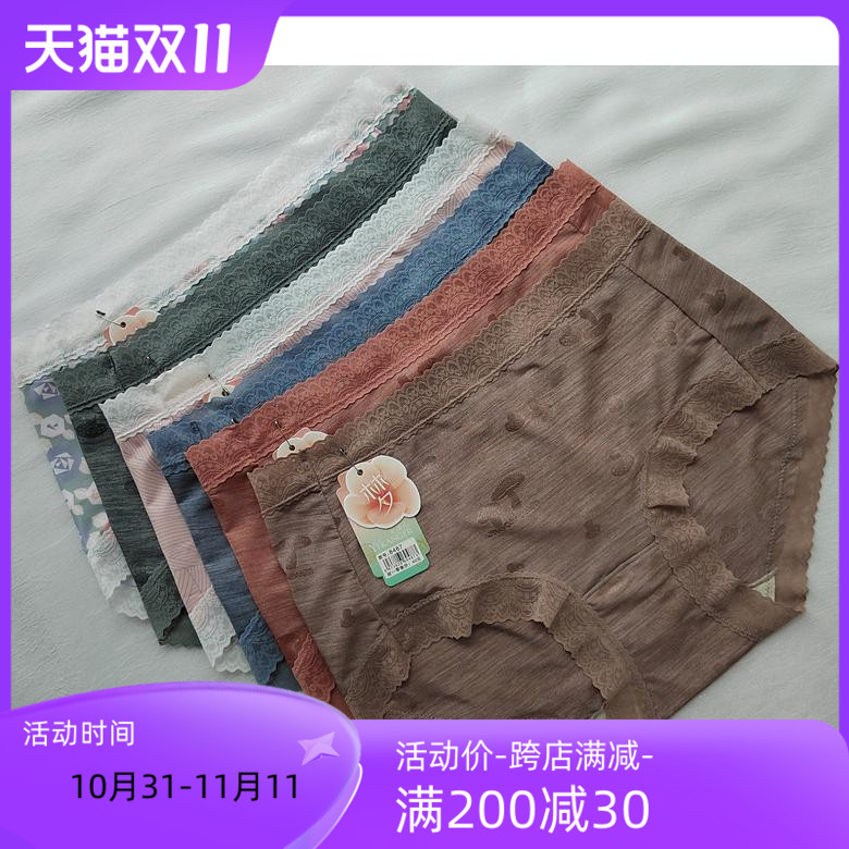 【产品名称:亿康儿新款氧护舒适冰丝蕾丝边草珊瑚中腰女内裤8077/8274/8487】