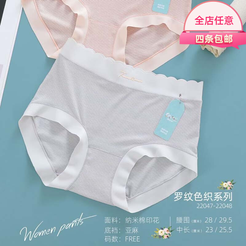 【产品名称:情美时22048无痕条纹高腰透气薄款女士内裤亚麻抗菌底裆四条包邮】