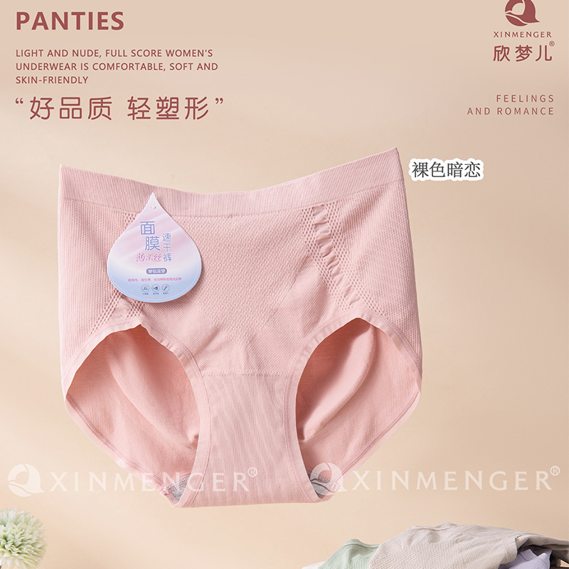【产品名称:裸感抗菌欣梦儿裸安无缝透气抑菌底裆柔绒棉中腰三角内裤女面膜裤】