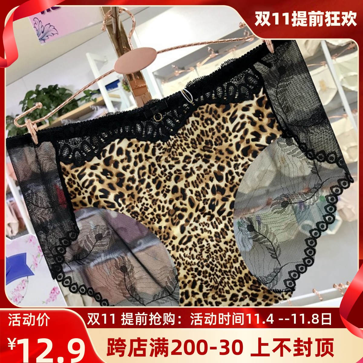 【产品名称:夜妙豹纹内裤女士性感蕾丝包臀三角裤薄款日系抗菌档透视诱惑底裤】
