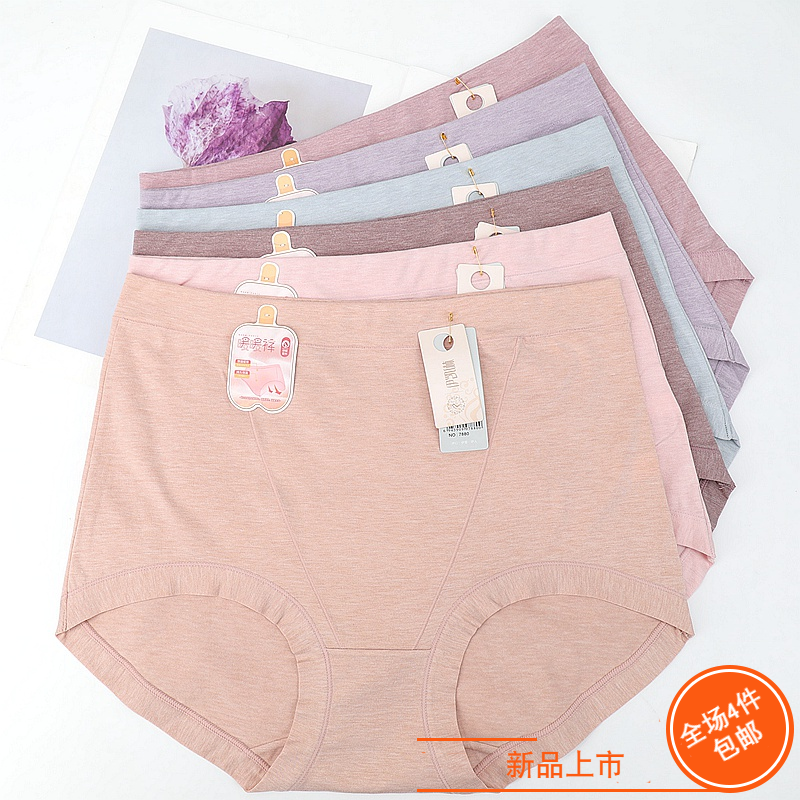 【产品名称:伊凯琳女士内裤大码莫代尔棉质抗菌妈妈胖MM200斤中高腰短裤7880】
