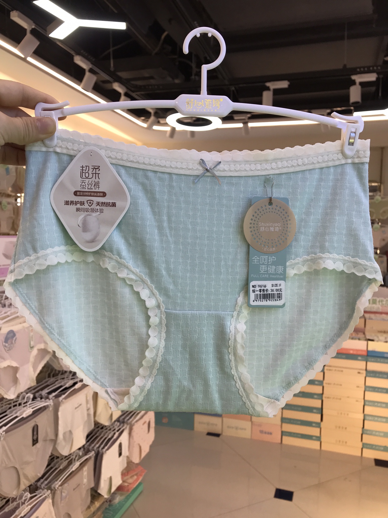 【产品名称:舒心雅琦中腰格子内裤女舒适透气时尚少女滋养护肤蚕丝抗菌短裤头】