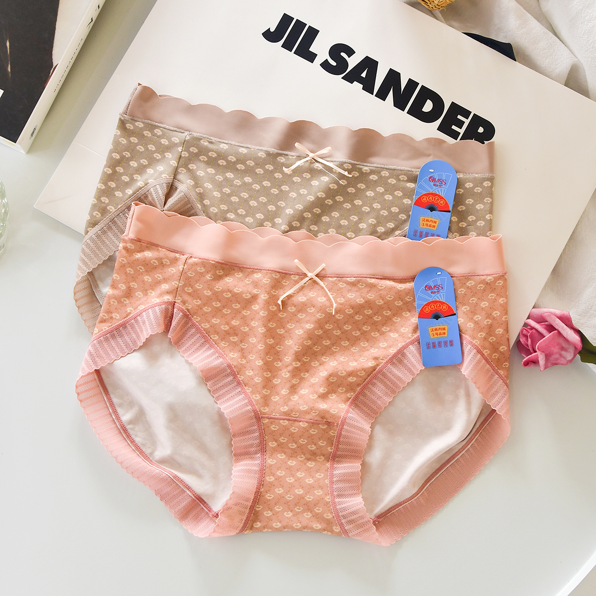 【产品名称:扇为已用!女士小碎花丝滑亚麻抗菌裆中腰内裤 情美时汉麻1号裤】