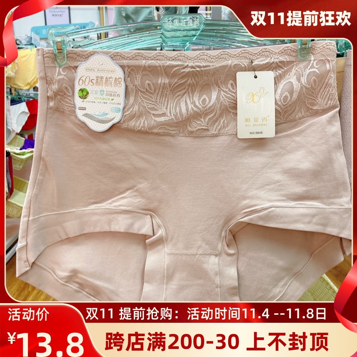 【产品名称:旭金香内裤高腰女士大码纯棉舒适透气包臀抑菌无痕全棉妈妈三角裤】