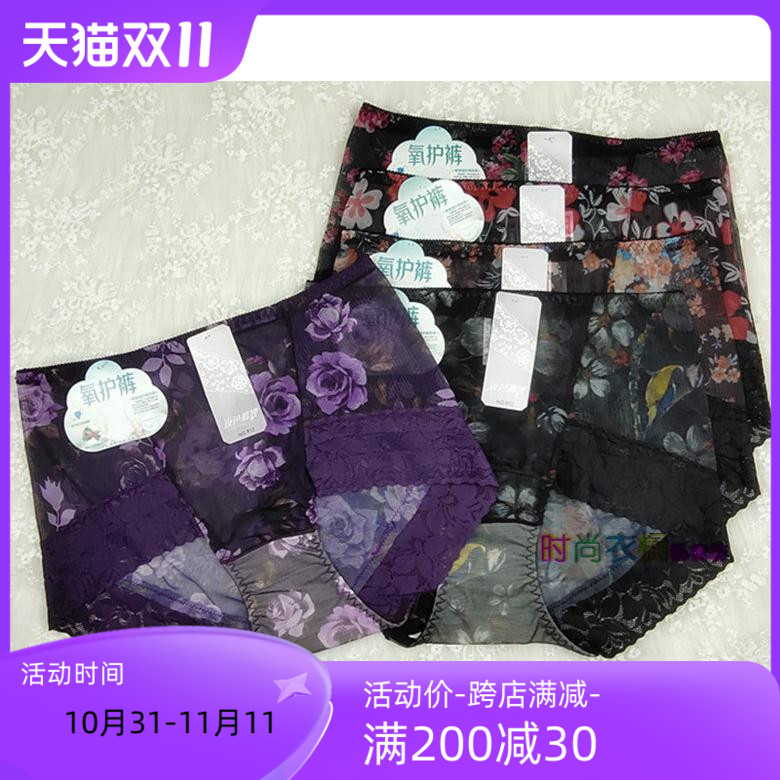 【产品名称:4条包邮夜色狐狸全网纱印花性感舒适中高腰女士内裤912】