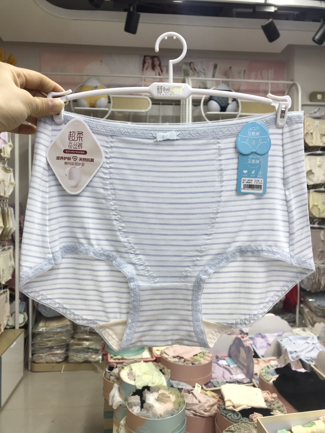 【产品名称:舒心雅琦中腰纤维棉包臀内裤女横条柔软舒适蚕丝抗菌底裤大弹力】