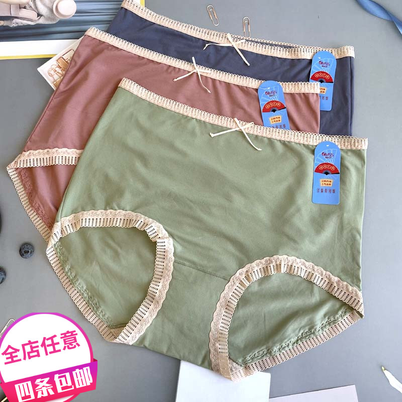 【产品名称:情美时2128新款高腰汉麻底裆女士内裤纯色简约舒适大版四条包邮】