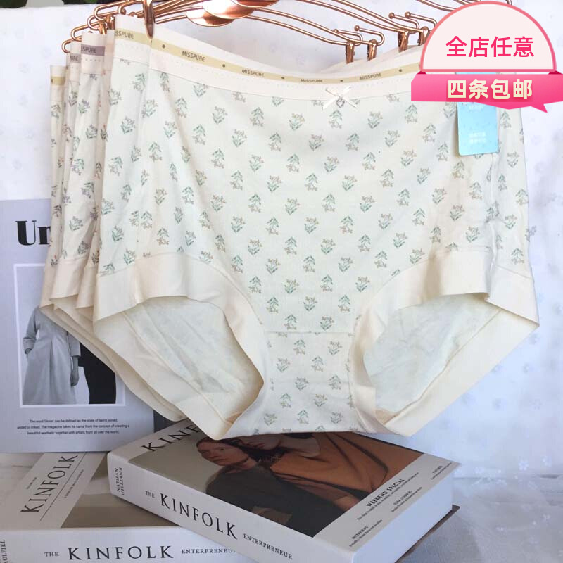 【产品名称:情美时30052B新款加大码无痕印花系列高腰高弹细螺纹软糯女内裤】