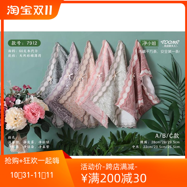 【产品名称:粉岱俏美人净小姐新款60支木代尔柔软薄荷底裆中高腰女内裤7912】