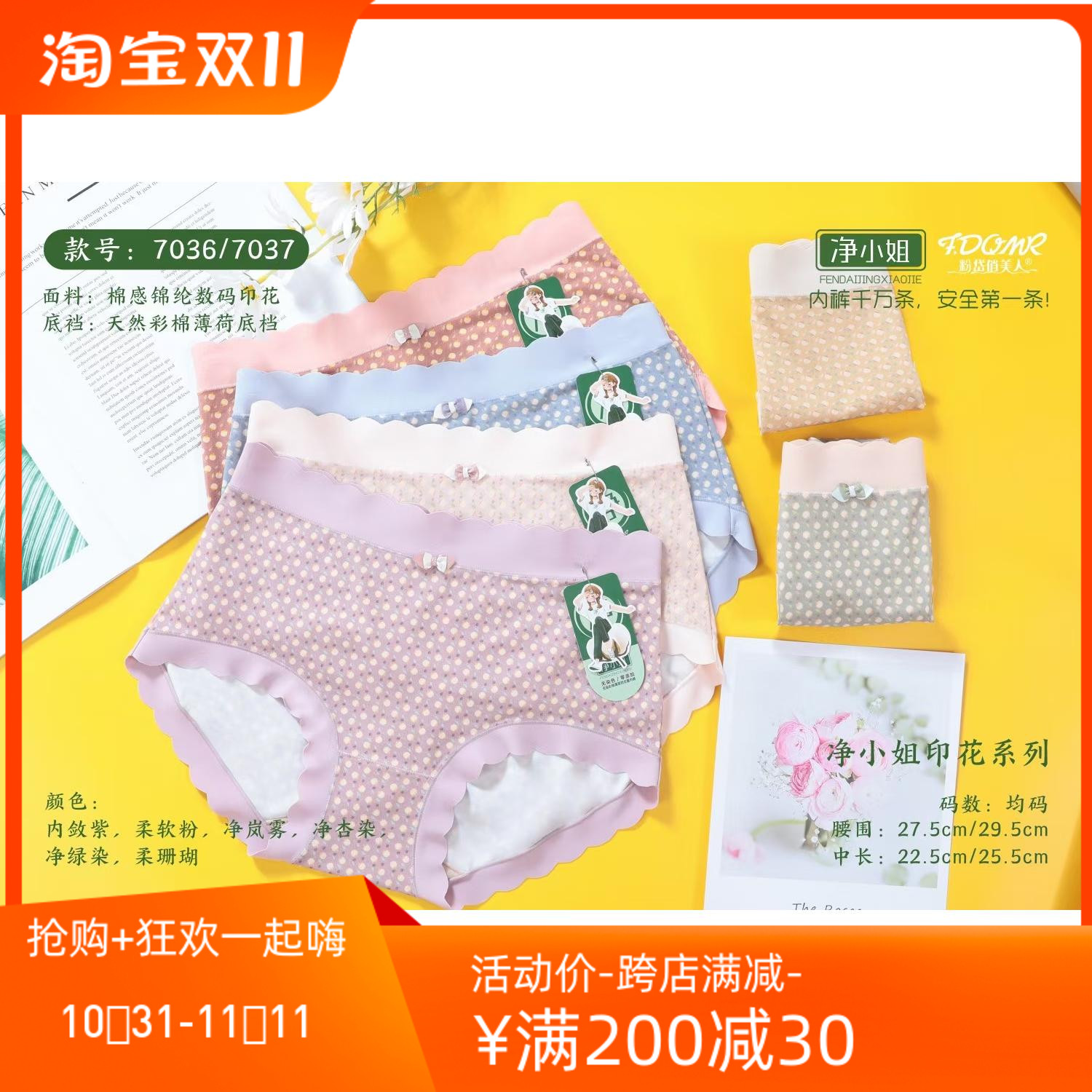 【产品名称:粉岱俏美人净小姐7037新款棉感锦纶舒适透气薄荷裆中腰女士内裤】