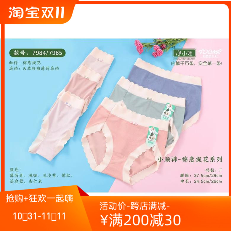 【产品名称:粉岱俏美人净小姐新款无痕舒适透气中高腰高开叉高弹女内裤7985】