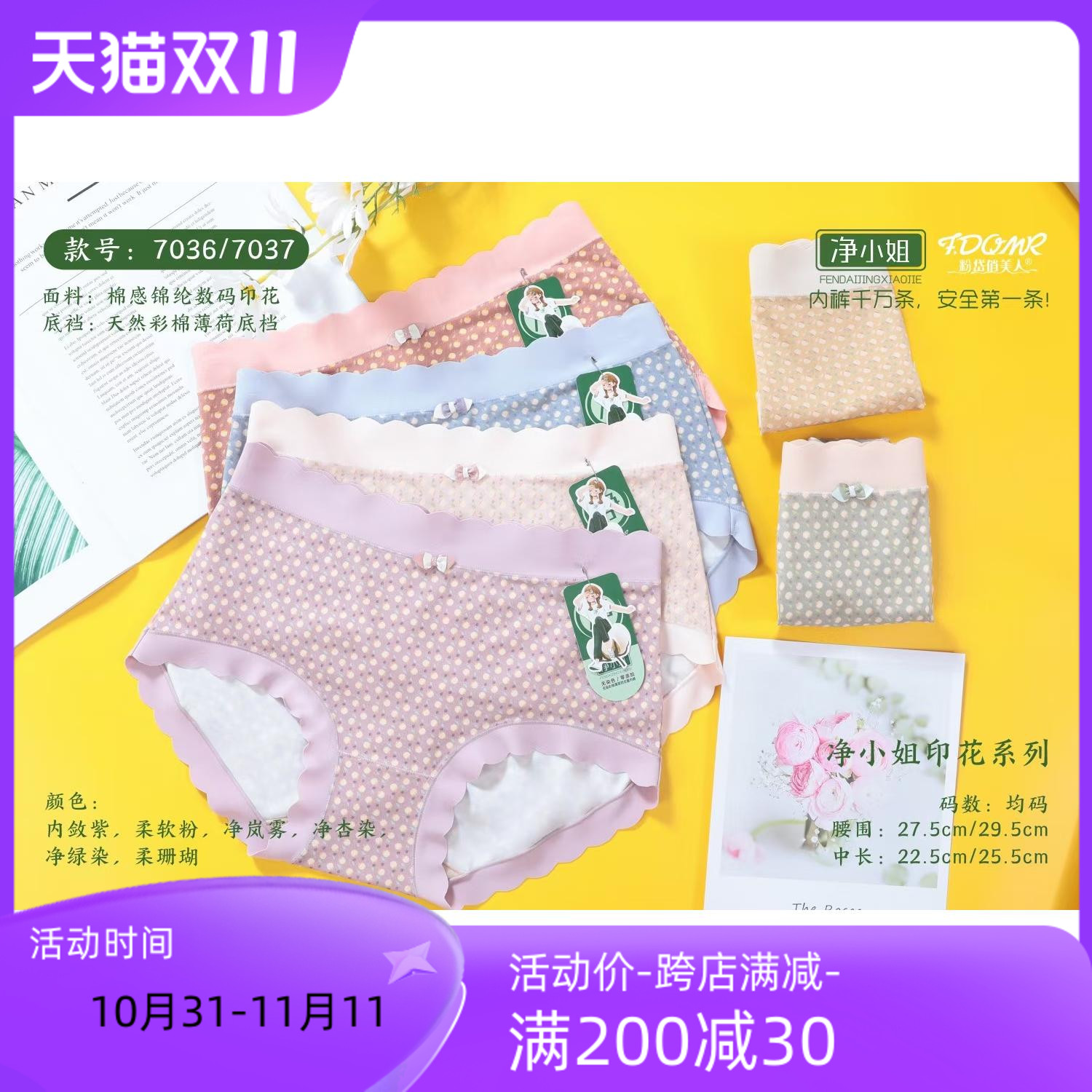 【产品名称:粉岱俏美人净小姐7037新款棉感锦纶舒适透气薄荷裆中腰女士内裤】