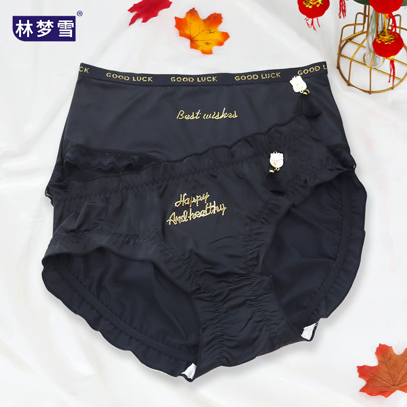 【产品名称:林梦雪纯色无痕蕾丝女士内裤大码冰丝女生透气柔软性感中腰三角裤】