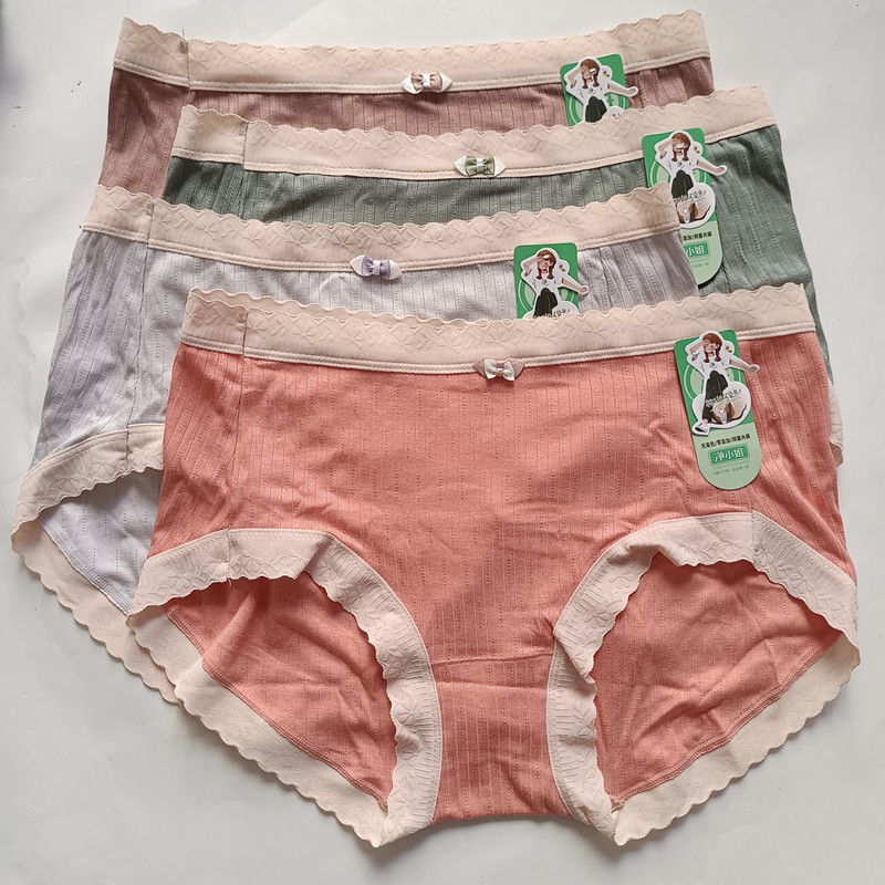 【产品名称:3条包邮粉岱俏美人净小姐女士内裤中高腰彩棉薄荷底裆螺纹裤7048】