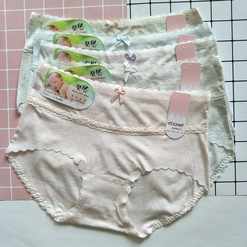 【产品名称:4条包邮粉岱俏美人无痕波浪纹木代尔中腰女士内裤婴肤花纱3780】