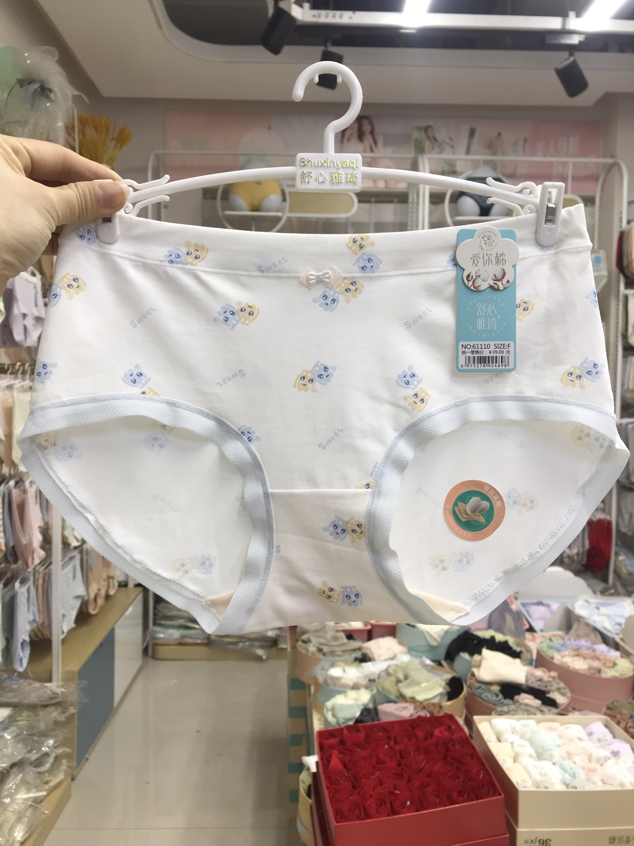 【产品名称:舒心雅琦中腰爱你棉纯棉印花女士内裤舒适透气蚕丝抗菌内裆无痕】